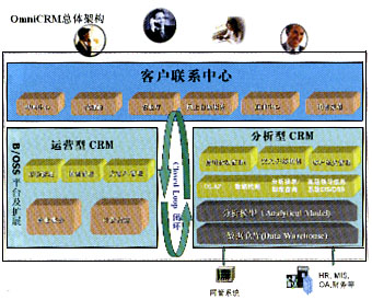 經(jīng)營分析型CRM: OmniVision是OmniCRM方案中經(jīng)營分析型CRM的核心,它采用數(shù)據(jù)倉庫、ETL、OLAP分析、靈活報(bào)表展現(xiàn)及數(shù)據(jù)挖掘等技術(shù),結(jié)合電信業(yè)務(wù)的深厚經(jīng)驗(yàn),進(jìn)行用戶分析、業(yè)務(wù)分析、收益分析、大客戶分析、營銷分析、競爭分析、服務(wù)質(zhì)量分析等主題分析。 客戶聯(lián)系中心: OmniContactCenter是OmniCRM方案中的客戶聯(lián)系中心,包括多媒體呼叫中心、網(wǎng)上用戶自服務(wù)系統(tǒng)(網(wǎng)上營業(yè)廳)、直郵傳真處理中心等。所有的市場活動(dòng)都是由客戶聯(lián)系中心傳遞給客戶的,所有的客戶反饋和請求都是由這里反饋給分析系統(tǒng)的。 大客戶管理:OmniVIP OmniVIP是亞信公司結(jié)合深厚的行業(yè)知識(shí),專門針對集團(tuán)大客戶、商業(yè)大客戶、潛在大客戶等各類電信大客戶,從分析和運(yùn)營兩個(gè)方面為各電信公司提供的完整而領(lǐng)先的大客戶管理方案,它能夠?yàn)檫\(yùn)營商提供現(xiàn)有及潛在大客戶的全方位視圖,包括客戶行為、業(yè)務(wù)情況、商業(yè)獲利率、競爭情況等,挖掘潛在商機(jī),使利潤最大化;能夠使運(yùn)營商有效地降低成本;能夠使運(yùn)營商為大客戶提供真正的個(gè)性化服務(wù);能夠使運(yùn)營商預(yù)測、吸引并發(fā)展?jié)撛诘拇罂蛻;能夠使運(yùn)營商有效地管理大客戶服務(wù)人員,提高客戶的滿意度和忠誠度;能夠通過OmniContactCenter、代理商、營業(yè)廳、SMS、Email等全面的渠道管理,幫助電信運(yùn)營商對大客戶進(jìn)行“全員、全程、全方位”服務(wù),從而全方位地為大客戶提供最完善優(yōu)質(zhì)的服務(wù)。 市場管理:OmniMarketing OmniMarketing根據(jù)分析系統(tǒng)得出的結(jié)論,產(chǎn)生相應(yīng)的市場活動(dòng)發(fā)送給運(yùn)營型CRM部分執(zhí)行,同時(shí)將執(zhí)行結(jié)果和反饋收集回來進(jìn)行比較、評(píng)價(jià)和進(jìn)一步的分析,以期設(shè)計(jì)出更合理的資費(fèi)和更貼切的業(yè)務(wù)給用戶。 銷售管理:OmniSFA 隨著競爭的加劇,運(yùn)營商的銷售也將從傳統(tǒng)的柜臺(tái)坐等的經(jīng)營模式轉(zhuǎn)變成有針對性的主動(dòng)出擊發(fā)展客戶的模式。銷售管理系統(tǒng)就是提供了針對銷售人員的銷售輔助工具,其中包括任務(wù)分配與下達(dá)、日程安排、客戶資料管理、銷售機(jī)會(huì)管理、銷售漏斗、報(bào)價(jià)管理、訂單合同管理、銷售業(yè)績考評(píng)和資金評(píng)定等模塊。 通過OmniSFA,銷售工作將按照科學(xué)化正規(guī)化流程化的方式來進(jìn)行。 運(yùn)作型和分析型CRM的互動(dòng)循環(huán)