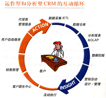 運(yùn)作型CRM和分析型CRM不是孤立的模塊,他們之間是互動(dòng)的,首尾相接關(guān)系。分析型CRM從客戶背景資料和消費(fèi)數(shù)據(jù)經(jīng)過數(shù)據(jù)采集、數(shù)據(jù)倉庫、數(shù)據(jù)挖掘和分析而得出分析的結(jié)論。這些結(jié)論又被制定成為市場活動(dòng)被運(yùn)營型CRM通過客戶聯(lián)系中心、銷售管理、大客戶管理等模塊進(jìn)行執(zhí)行。執(zhí)行的結(jié)果和反饋又重新被分析系統(tǒng)進(jìn)行分析和評(píng)價(jià)形成一個(gè)循環(huán)過程。 亞信科技(中國)有限公司 地 址:北京海淀區(qū)中關(guān)村南大街6號(hào)中電信息大廈三、四層 |