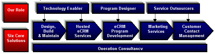 依靠?jī)?yōu)秀的人才、可靠的質(zhì)量以及專業(yè)的運(yùn)作方面的卓越表現(xiàn)營(yíng)管理,我們不僅能夠提高您的客戶滿意度,而且能夠幫助您成功實(shí)施客戶關(guān)系管理策略!依托優(yōu)秀的人才、可靠的質(zhì)量以及專業(yè)的運(yùn)作方面的卓越管理,我們不僅能夠提高您的客戶滿意度,而且能夠幫助您成功實(shí)施客戶關(guān)系管理策略! 案例分享 電訊盈科客戶服務(wù)聯(lián)系服務(wù)中心已經(jīng)在不同的行業(yè)中建立了廣泛的、富有成效的客戶基礎(chǔ)。在亞洲地區(qū),我們?yōu)槎嗉掖笮偷谋镜丶翱鐕?guó)公司提供服務(wù)。下列是我們公司在客戶關(guān)系管理方面的一些成功案例: 銀行保險(xiǎn)業(yè) 美國(guó)大通銀行(世界知名的大銀行)授權(quán)我們?yōu)槠湓O(shè)計(jì)、建立并管理一個(gè)擁有約300個(gè)人工座席的綜合客戶聯(lián)系客戶服務(wù)中心。通過采應(yīng)用我們一流的客戶服務(wù)中心技術(shù)及設(shè)施,大通銀行的服務(wù)效率便在最初的兩個(gè)月內(nèi)就,提高了15%。 AXA國(guó)衛(wèi)集團(tuán)指定我們?yōu)槠鋵?shí)施電話營(yíng)銷項(xiàng)目。作為一種有效的銷售渠道,客戶服務(wù)代表的突出表現(xiàn)給AXA創(chuàng)造了大量的銷售機(jī)會(huì)。 政府與機(jī)構(gòu) 香港特別行政區(qū)政府授權(quán)我們?cè)O(shè)計(jì)并建立一個(gè)綜合的呼叫中心,以集中管理涉及多個(gè)政府部門業(yè)務(wù)的咨詢。為此,我們招聘并為其培訓(xùn)了一支只約200人的專業(yè)客戶服務(wù)隊(duì)伍。 國(guó)泰航空公司(全球最大的航空公司之一)與我們簽署協(xié)議,由我們?yōu)槠浣ⅰ⒐芾聿⑦\(yùn)營(yíng)一個(gè)全球性的呼叫中心,處理來自“馬可孛羅會(huì)波羅俱樂部”及“亞洲萬里通”(常旅客計(jì)劃)會(huì)員的查詢。目前,這個(gè)中心通過100多個(gè)客戶服務(wù)專員,向全球850個(gè)地區(qū)的客戶提供15種語言的服務(wù)。 IT與通訊業(yè) 微軟(臺(tái)灣)授權(quán)我們管理其客戶服務(wù)中心,提供3種個(gè)語言的服務(wù)。每一個(gè)客戶服務(wù)代表為此接受了有關(guān)微軟250多種產(chǎn)品的綜合培訓(xùn)。 諾基亞委托我們管理其多渠道的客戶聯(lián)系客戶服務(wù)中心,為諾基亞客戶提供全面客戶服務(wù)。為了保持保持高水準(zhǔn)優(yōu)質(zhì)、持續(xù)的服務(wù),我們?yōu)槠溟_發(fā)并維護(hù)一個(gè)在線知識(shí)庫,以方便每個(gè)客戶服務(wù)代表獲取最新的產(chǎn)品信息或了解特殊的運(yùn)營(yíng)過程,保證以便及時(shí)準(zhǔn)確的地得向顧客戶提供服務(wù)。 中國(guó)聯(lián)通與我們正式簽訂合同,為其提供系統(tǒng)及運(yùn)營(yíng)管理方面的顧問服務(wù),目的是通過我們專業(yè)的顧問服務(wù),提升中國(guó)聯(lián)通現(xiàn)有的服務(wù)水平,,,以應(yīng)對(duì)中國(guó)入世后電信行業(yè)的市場(chǎng)競(jìng)爭(zhēng)。 消費(fèi)零售業(yè) 松下電器(中國(guó))與我們簽訂合約,由我們來幫助管理其采用西貝爾(Siebel)系統(tǒng)建立的、全國(guó)性綜合管理客戶服務(wù)熱線中心,。這個(gè)使用西貝爾(Siebel)系統(tǒng)建立的綜合客戶服務(wù)中心將向?yàn)樗上码娖鳎ㄖ袊?guó))所有的客戶提供服務(wù)。 香港快達(dá)票與我們簽署了一個(gè)長(zhǎng)期合約,由我們來幫助為其處理大范圍的訂票業(yè)務(wù)。我們公司所提供的服務(wù)包括:預(yù)定票務(wù)預(yù)定、座位安排、門票印制、送遞票、網(wǎng)上訂票以及其它相關(guān)的服務(wù)。
