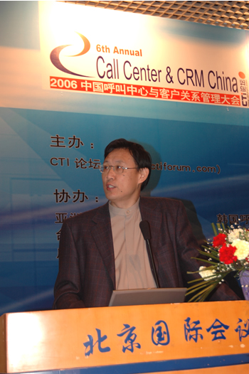 。。2006年4月3日至5日,2006中國呼叫中心與客戶關(guān)系管理大會在北京國際會議中心隆重召開,以下是4月5日上午專題演講的相關(guān)圖片報(bào)道: