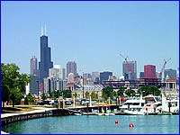 芝加哥并不是一個旅游城市,人口也只有200多萬。如果說觀光景點的話,就只有位于城市中心由近40多座高樓組成的摩天大樓群,高聳入云的高樓一座連著一座,使得芝加哥整個城市看上去象是鋼筋水泥構成的森林,充滿了大都市的氣魄。其中的西爾斯大廈(Sears Tower),在紐約的世貿(mào)大廈毀于恐怖事件之后,成為全美最高建筑。