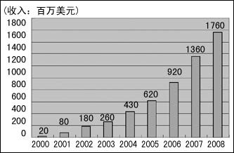 IP PBX亞太市場(chǎng)2000年~2008年預(yù)測(cè)增長圖
