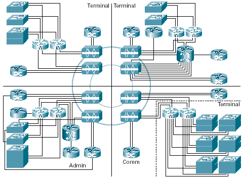 下面的結構圖顯示了該機場所部署的基礎設施的拓撲結構。