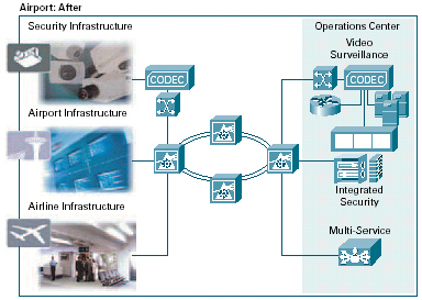 。。許多機場安全系統(tǒng)基于需人工協(xié)調(diào)提示和報警的不兼容應(yīng)用。通過在網(wǎng)絡(luò)上實現(xiàn)這些系統(tǒng)和在基于標準的通用基礎(chǔ)設(shè)施上傳輸信息,機場可實時關(guān)聯(lián)安全信息,并根據(jù)整體形勢作出立即行動。思科提供了一個強大的網(wǎng)絡(luò)基礎(chǔ)設(shè)施,可集成機場中的視頻監(jiān)視、其它物理安全設(shè)備和用于緊急響應(yīng)及通信的設(shè)備。無論設(shè)備使用有線還是無線連接,都可在所有類型的設(shè)備上實現(xiàn)語音、視頻和數(shù)據(jù)交換。