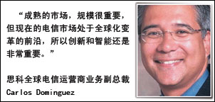 而當年使年輕的Volpi倍感溫暖的Dominguez,對兒童教育事業(yè)情有獨鐘,有著一半華裔血統(tǒng)的他,看上去非常親切。作為思科全球電信業(yè)務(wù)的負責人,中國市場對他來說稔熟心間,對于國內(nèi)運營商在服務(wù)提供和業(yè)務(wù)方面的變化,他感觸頗深:“中國運營商對細分市場,例如企業(yè)級市場、中小企業(yè)市場、消費者市場等,都有深刻的了解。另外他們也期待更高水平以及更豐富的業(yè)務(wù),比如說外包服務(wù)、安全服務(wù)、ICP服務(wù)以及IP電話服務(wù)!