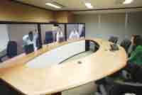 10月24日,在思科公司位于香港灣仔鷹君大廈的一間會議室,包括思科CEO錢伯斯在內(nèi)的六名高管已經(jīng)“坐”在橢圓型的會議桌一側(cè)!癏i!”隨著錢伯斯的一聲招呼,會議室內(nèi)的人這才發(fā)現(xiàn),正在講話的“錢伯斯”是在三塊連接起來的等離子屏幕上,而此刻他真實的位置是在思科位于美國硅谷的總部。65英寸的1080P高清晰屏幕上,錢伯斯等人的影像如真人大小,加上三塊屏幕被設(shè)計成會議桌的另外一半,讓人誤以為錢伯斯真的來到了香港。
