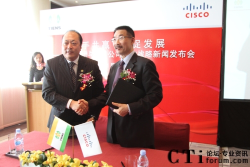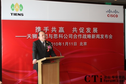 CTI論壇(ctiforum)1月12日消息(記者 張塵):2010年1月11日,北京——“攜手共贏 共促發(fā)展——天獅集團(tuán)與思科公司戰(zhàn)略項目新聞發(fā)布會”在北京召開,雙方共同宣布,天獅集團(tuán)國際健康產(chǎn)業(yè)園網(wǎng)絡(luò)平臺成功啟用,并正式達(dá)成合作戰(zhàn)略。天獅集團(tuán)董事長兼總裁李金元先生與思科全球副總裁、思科中國副董事長兼總裁林正剛先生出席新聞發(fā)布會,并進(jìn)行簽約儀式。通過本次強(qiáng)強(qiáng)聯(lián)合,思科面向服務(wù)的網(wǎng)絡(luò)架構(gòu)(SONA)全面部署于天獅集團(tuán)國際健康產(chǎn)業(yè)園,為天獅集團(tuán)業(yè)務(wù)的穩(wěn)定持續(xù)發(fā)展以及信息化水平的進(jìn)一步提升提供了可靠保證,同時也為雙方未來更深層次的合作打下了堅實的基礎(chǔ)。