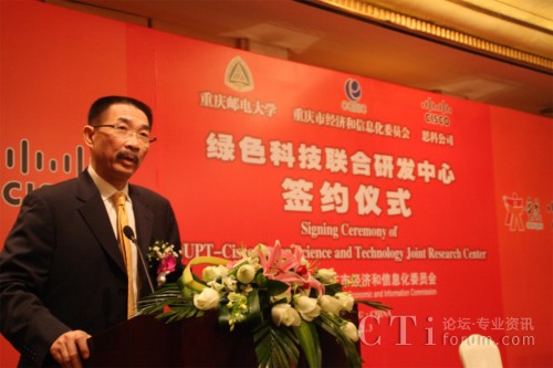 重慶市副市長童小平與思科公司全球副總裁林正剛出席簽約儀式,并共同為“綠色科技聯(lián)合研究實驗室”揭牌。儀式由重慶市政府人員副秘書長廖慶軒主持,重慶市經(jīng)濟與信息化委員會黨組書記沐華平副主任作為見證人,與重慶郵電大學(xué)校長陳流汀教授、思科中國研發(fā)中心總經(jīng)理常詢傳博士共同在協(xié)議書上簽字,思科公司和市級相關(guān)部門負責(zé)人參加了簽約儀式。