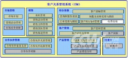 AIOpenCRM包含市場營銷、銷售、綜合客服、合作伙伴管理及產(chǎn)品管理等關(guān)鍵功能領(lǐng)域,如下圖: