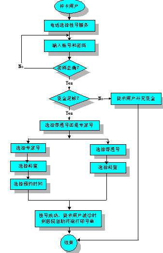 我們可以設想,新系統(tǒng)開通運行后,用戶到醫(yī)院就診,將會是如下流程: