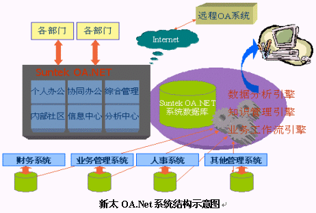新太OA.NET系統(tǒng)采用B/S結(jié)構(gòu)設(shè)計(jì),系統(tǒng)以提供大量快速靈活的自定義功能以及許多核心平臺(tái)產(chǎn)品,如協(xié)同工作平臺(tái)、通訊平臺(tái)、知識(shí)管理平臺(tái)、信息服務(wù)平臺(tái)等,能夠幫助用戶快速實(shí)施信息化建設(shè),OA.NET系統(tǒng)的最大特色是實(shí)現(xiàn)"零代碼"維護(hù)功能,系統(tǒng)安裝后,無(wú)需編寫任何代碼就可生成各種辦公業(yè)務(wù)應(yīng)用,用戶只需幾個(gè)小時(shí)的培訓(xùn)就可以使用OA.Net提供的工具進(jìn)行復(fù)雜辦公流程的設(shè)計(jì),并且可以不需要經(jīng)過(guò)任何編碼的改動(dòng),就能輕松適應(yīng)流程變化的新情況。另外,OA.NET強(qiáng)調(diào)對(duì)企業(yè)內(nèi)部知識(shí)的有效管理和有效利用,能夠沉積企業(yè)日常的零散信息,并通過(guò)有序歸類的方式使之成為對(duì)企業(yè)有用的知識(shí)。OA.Net還提供了功能強(qiáng)大的個(gè)性化配置功能,每個(gè)員工都可以定制自己的界面風(fēng)格和功能模塊,并且可以自己建立個(gè)人的應(yīng)用環(huán)境,滿足個(gè)人的喜好。OA.Net包含了新太自主開(kāi)發(fā)的業(yè)務(wù)工作流處理引擎,能夠在不用編寫代碼的情況集成其他業(yè)務(wù)系統(tǒng),實(shí)現(xiàn)了業(yè)務(wù)系統(tǒng)中的數(shù)據(jù)和辦公流程的完美結(jié)合,使得辦公應(yīng)用系統(tǒng)真正成為企業(yè)內(nèi)部的廣義化辦公門戶。