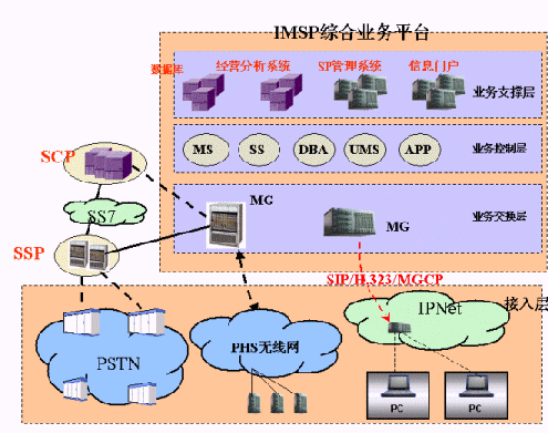 4、 支持標(biāo)準(zhǔn)的SIP/H.323協(xié)議,IMSP支持IP接入,系統(tǒng)可平滑過(guò)渡到下一代網(wǎng)絡(luò)(NGN),逐步建立符合標(biāo)準(zhǔn)的服務(wù)、網(wǎng)絡(luò)和終端,徹底取代原有相對(duì)獨(dú)立的應(yīng)用服務(wù)、通信網(wǎng)絡(luò)和終端。;