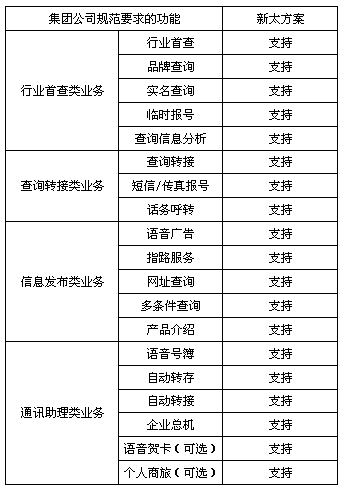 結(jié)合新太在語(yǔ)音增值業(yè)務(wù)方面的經(jīng)驗(yàn),推薦如下號(hào)碼百事通擴(kuò)展業(yè)務(wù):