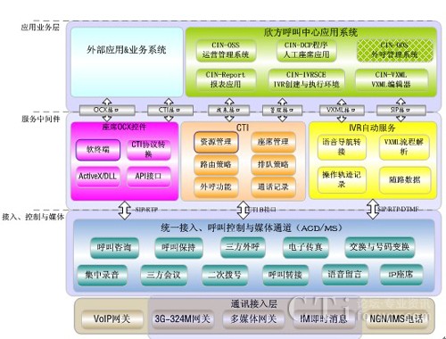 欣方呼叫中心是基于下一代融合網(wǎng)絡(luò)技術(shù)和架構(gòu)的新型呼叫中心平臺(tái),面向PSTN(固定電話(huà)網(wǎng))、PLMN(移動(dòng)電話(huà)網(wǎng))、3G窄帶視頻和NGN/IMS(軟交換)多種網(wǎng)絡(luò)接入提供多媒體聯(lián)絡(luò)中心系統(tǒng),支持話(huà)務(wù)員與客戶(hù)之間語(yǔ)音、視頻、傳真、消息等多種通訊方式。系統(tǒng)采用下一代網(wǎng)絡(luò)融合架構(gòu),呼叫平臺(tái)采用SIP信令方式搭建,信令與媒體分離、平臺(tái)與網(wǎng)絡(luò)無(wú)關(guān),支持多種異構(gòu)網(wǎng)絡(luò)環(huán)境接入,支持多種媒體統(tǒng)一排隊(duì)與路由。