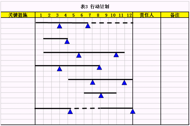 有經(jīng)驗(yàn)的管理者都有體會,年度規(guī)劃對于全年的工作將產(chǎn)生決定性影響,因此在設(shè)計每一個關(guān)鍵措施的時候,多想想 "問題"和"風(fēng)險"是非常有好處的。表1是規(guī)劃關(guān)鍵措施的工具,將有助于我們思考的更加全面。