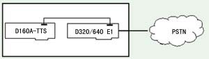 下面以深圳東進(jìn)的D160A-TTS產(chǎn)品為例簡單介紹TTS語音卡的應(yīng)用。在數(shù)字中繼線路上(ISDN-PRI信令,1號信令,7號信令)的硬件構(gòu)成如右圖。