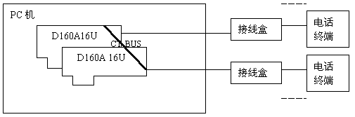 2、兩塊東進(jìn)D160A 16U模擬語音卡(PCI):單板提供16路話路處理能力。