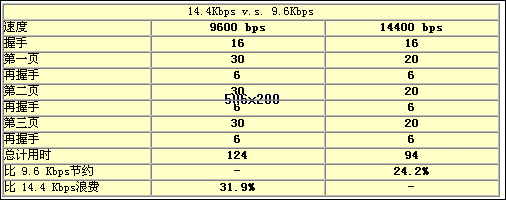 東進(jìn)傳真卡TC-04FM采用RockWell的33.6K的芯片,提供的傳真速率是 14.4Kbps,相對(duì)于 9.6Kbps,可以節(jié)約24.2%的時(shí)間(按3頁(yè)傳真計(jì)算)。各項(xiàng)操作的占用時(shí)間比較表如下: