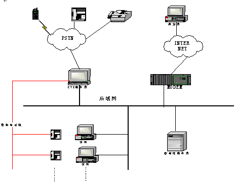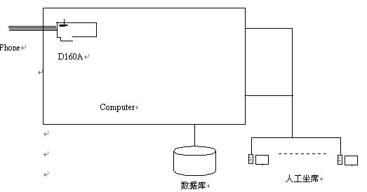 整個(gè)系統(tǒng)主要由CTI服務(wù)器(語音處理服務(wù)器)構(gòu)成,結(jié)構(gòu)圖如下。基于東進(jìn)D160A的CTI服務(wù)器方便地實(shí)現(xiàn)了 呼叫排隊(duì): 外線呼入時(shí),將呼叫自動(dòng)分配到空閑座席; 座席全忙時(shí),將呼叫進(jìn)行排隊(duì),待座席空閑時(shí),自動(dòng)轉(zhuǎn)接。 自動(dòng)語音提示:外線呼入時(shí),自動(dòng)播放提示語音"您好,歡迎使用XX 系統(tǒng)、自動(dòng)服務(wù)請(qǐng)按0,人工服務(wù)請(qǐng)按1;如果選擇人工服務(wù),座席臺(tái)全忙時(shí),放提示音"服務(wù)臺(tái)正忙,請(qǐng)稍候"。自動(dòng)服務(wù):播放語音提示,指導(dǎo)客戶操作。顧客可以利用音頻按鍵輸入信息;根據(jù)客戶的音頻按鍵播放相應(yīng)的信息,或者進(jìn)入下一級(jí)菜單。坐席服務(wù):外線撥入系統(tǒng)后,如果選擇人工服務(wù),系統(tǒng)將來話與臺(tái)內(nèi)座席接通。