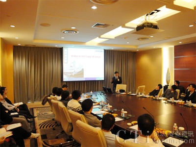 東進(jìn)Keygoe產(chǎn)品經(jīng)理劉駿先生是本次活動(dòng)當(dāng)之無愧的頂梁柱,活躍在沙龍活動(dòng)的每一站。他對3G通信市場進(jìn)行了深入淺出的分析,借鑒國外成功的案例經(jīng)驗(yàn),并對中國可能的熱點(diǎn)業(yè)務(wù)做出東進(jìn)的預(yù)測,即在將來,手機(jī)上網(wǎng),視頻點(diǎn)播,定位服務(wù)以及下載服務(wù)可能成為熱點(diǎn),同時(shí),重點(diǎn)列舉和分析了東進(jìn)在3G業(yè)務(wù)應(yīng)用的探索成果和經(jīng)驗(yàn)。會(huì)中對將視頻功能嵌入到“3G總機(jī)一號(hào)通”這類應(yīng)用的描述,非常引人入勝,尤其讓人注意的是,他認(rèn)為3G視頻在將來不會(huì)作為一個(gè)單獨(dú)的業(yè)務(wù)而存在,而公眾業(yè)務(wù)并沒有如預(yù)期般成為主流。此外,以國慶60周年閱兵空中梯隊(duì)現(xiàn)場指揮調(diào)度系統(tǒng)應(yīng)用為例,對行業(yè)呼叫中心的成功案例分享以及重點(diǎn)行業(yè)的前景預(yù)測分析也給客戶留下很深刻的印象。劉駿表示,對于正進(jìn)入新格局的市場,多媒體交換機(jī)正愈加凸顯其多媒體處理性能,并加速與其他通信系統(tǒng)的融合,而理解客戶的需求,成為重中之重。
