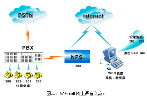 “無聲”一直是企業(yè)電子商務(wù)的最大遺憾,因?yàn)椤盁o聲”,許多消費(fèi)者卻步了。怎樣把語音和Web在網(wǎng)絡(luò)上結(jié)合起來?這正是星際網(wǎng)絡(luò)推出的web call系統(tǒng)(如圖二所示)的目標(biāo)。消費(fèi)者點(diǎn)擊點(diǎn)擊呼叫按鈕,就可以通過麥克風(fēng)與客服代表通話。并且網(wǎng)上來電與普通來電一樣,經(jīng)過交換及排隊(duì)處理,同樣支持來電資料彈出。對(duì)客戶來說,只需要一臺(tái)接入Internet的多媒體電腦和免費(fèi)的客戶端軟件就可實(shí)現(xiàn)Web瀏覽和交談功能。這個(gè)功能不僅可以讓客戶獲得更好的售后服務(wù),在售前服務(wù)中也可以發(fā)揮巨大效用。家電產(chǎn)品的特性使得消費(fèi)者在購買之前必須對(duì)產(chǎn)品有充分了解,在網(wǎng)站瀏覽中通過與客戶代表的交流增進(jìn)產(chǎn)品了解,刺激其購買欲望。讓家電行業(yè)的網(wǎng)上商務(wù)的更有效。