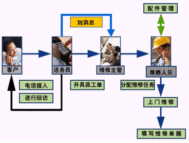 后臺客服應用子系統(tǒng)建成后,客戶的投訴被自動導入,生成投訴單和維修單,自動轉(zhuǎn)發(fā)給維修部,安裝部等專業(yè)部門進行處理,處理完后,系統(tǒng)會安排話務員進行回訪,消費者的處理意見和滿意度將被忠實地記錄下來,進一步充實到客服數(shù)據(jù)庫中以指導企業(yè)的生產(chǎn)研發(fā)。