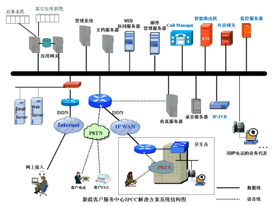 在IP技術(shù)應(yīng)用日益廣泛的今天,新晨集團和著名網(wǎng)絡(luò)技術(shù)提供商-美國思科系統(tǒng)有限公司(CISCO)合作,推出了基于IP技術(shù)的CALL CENTER解決方案。該方案以CISCO IP CONTACT CENTER平臺為核心,簡稱IPCC。