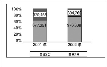 各種類型游戲在整個(gè)游戲市場(chǎng)中所占的比例(2001年 / 2002年)