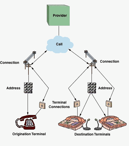 程序員在掌握利用JTAPI編寫CTI程序之前,首先得搞清JTAPI最基本的電話模型,這個模型是搭建CTI程序的基礎,它可以以樹狀結構表現(xiàn)出來(如下圖)。