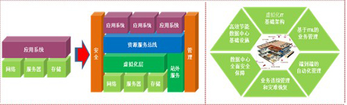 企業(yè)的發(fā)展和業(yè)務的創(chuàng)新越來越離不開IT技術的應用,傳統(tǒng)的以項目為建設單元的數(shù)據(jù)中心造成了煙囪式的建設、分布式的開發(fā)、分離式的運維,使眾多企業(yè)的 IT 形成了復雜的、孤立的架構,信息孤島隨處可見,無法提供靈活、安全和易于擴展的應用環(huán)境,從多方面影響了業(yè)務運營的效果。隨著商業(yè)模式的不斷創(chuàng)新、IT技術的不斷發(fā)展,業(yè)務與IT日益密切,傳統(tǒng)的數(shù)據(jù)中心建設已經(jīng)無法滿足未來業(yè)務發(fā)展的需要,難于部署新的應用與服務,設備利用率低下,業(yè)務彈性較難,無法保證系統(tǒng)和應用的可用性和可靠性,同時不斷上升的能源成本和能源需求、機房空間需求阻礙了業(yè)務的發(fā)展。