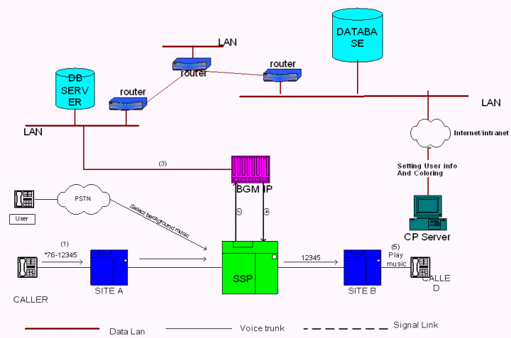 2、根據(jù)用戶撥打?qū)Ψ教?hào)碼的不同選擇不同的SSP,如果前綴有"*76",就會(huì)進(jìn)入BGM IP服務(wù)器,該通話會(huì)有用戶所定義的背景音樂,如果前綴沒有"*76",