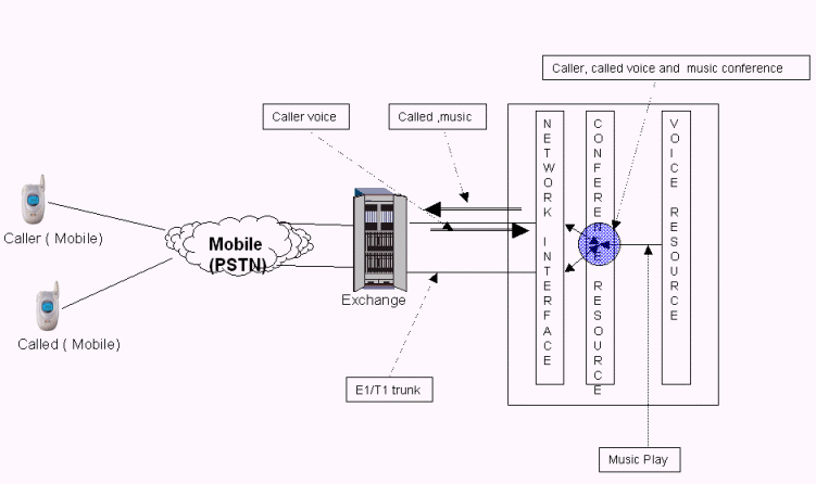 8、電話接通后,SCP發(fā)送命令到IP,在會(huì)議中加入主叫和被叫方播放背景音樂。