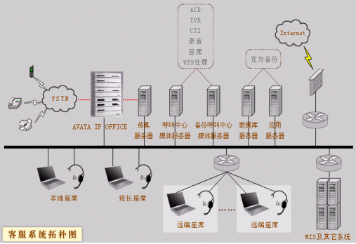 利用AVAYA IP OFFICE和Intel的HMP配合構(gòu)建的呼叫中心,是新一代小型呼叫中心的范例。利用IP OFFIC的高穩(wěn)定性和分布能力,HMP提供的基于IP媒體的豐富性實現(xiàn)了方案要求的高度融合性分布式和可擴(kuò)展性要求。