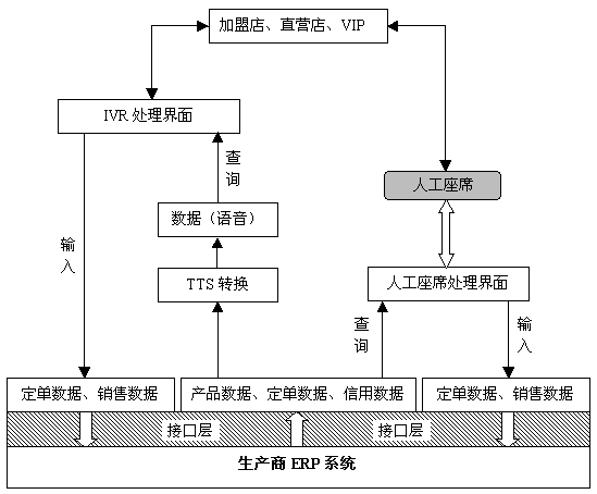 集成項(xiàng)目:與生產(chǎn)商ERP系統(tǒng)集成,增加人工座席應(yīng)用和IVR應(yīng)用