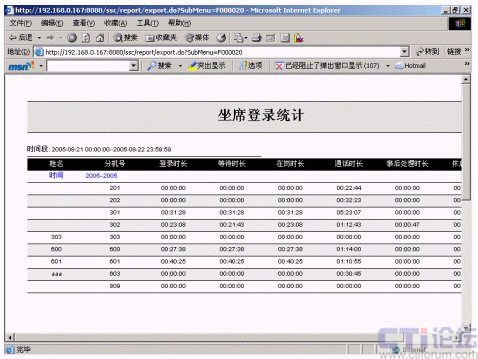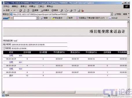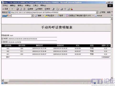 2.項目組外撥分析:包括手動外呼話費明細(xì)表、手動外呼話費總計表、項目組手動外呼日報告、項目組自動外呼日報告、項目組座席外撥總計、自動外呼話費明細(xì)表、自動外呼話費總計表、座席外呼日報告等。該統(tǒng)計報表分別提供了針對手動和自動的外撥話務(wù)、話費統(tǒng)計,分類明確,統(tǒng)計方便。