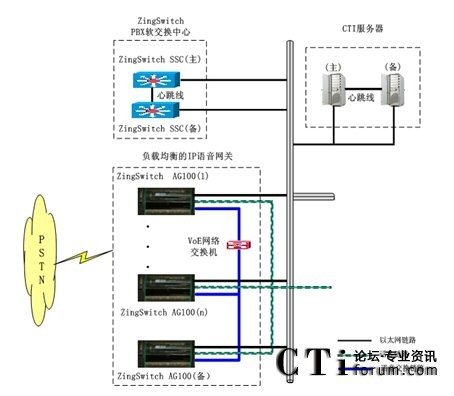 同時基于ZingSwitch® CVNET平臺的系統(tǒng)網(wǎng)絡架構中,AG100(IP語音網(wǎng)關)自身具有99.999%的高穩(wěn)定性外,具有負載均衡能力保證語音接續(xù)的不中斷。