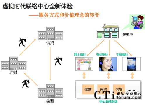 對(duì)于金融等高端行業(yè)應(yīng)用,聯(lián)絡(luò)中心的技術(shù)發(fā)展正逐步改變著銀行與客戶的“聯(lián)絡(luò)”格局和方式,通過(guò)新的“人機(jī)”(客戶與系統(tǒng))的實(shí)時(shí)交易,替代傳統(tǒng)的“人人”(客戶與員工面對(duì)面)柜臺(tái)交易模式,最終達(dá)到足不出戶,利用電子渠道瞬間完成交易,優(yōu)化客戶體驗(yàn)、提高業(yè)務(wù)效率,促進(jìn)金融業(yè)務(wù)發(fā)展的目的。