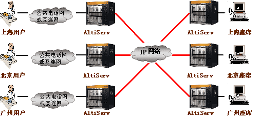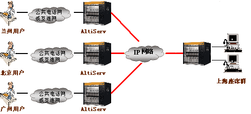 奧迪堅分布式呼叫中心圖 (多對一):