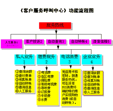 2.2 銀座《銀行客戶服務(wù)呼叫中心》功能(服務(wù)內(nèi)容)流程圖: