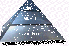 從另外一個角度,我們來分析一下呼叫中心市場的全球發(fā)展,呼叫中心市場按照用戶規(guī)模來劃分,可以劃分成200座席以上以電信為代表的大型呼叫中心市場,50到200座席,以銀行,證券等金融機構(gòu)為代表的中型呼叫中心市場以及50座席以下的大多數(shù)企業(yè)及企業(yè)用戶為代表的小型呼叫中心市場,從左圖很容易看出,呈現(xiàn)出的是一個金字塔的分布機構(gòu),據(jù)權威機構(gòu)的統(tǒng)計數(shù)據(jù)表明,200座席以上的呼叫中心已經(jīng)趨近飽和,大約5%的發(fā)展空間,而50座席以下的話叫中心市場取呈現(xiàn)出勃勃生機,發(fā)展空間很大,大約70%的市場容量,那么翻過來,我們也很容易看到,市場機會的不同,導致
