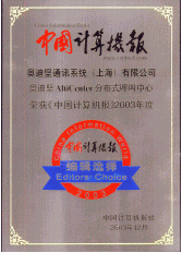 奧迪堅基于IP分布式呼叫中心平臺榮獲中國計算機報2003年度編輯推薦獎。《中國計算機報》(CIW-China