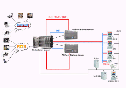 奧迪堅全球領(lǐng)先的CTI平臺的供應(yīng)商和IP分布式呼叫中心的領(lǐng)導(dǎo)者,在技術(shù)上不斷創(chuàng)新,對產(chǎn)品精益求精,尤其體現(xiàn)在對系統(tǒng)的運行安全性的要求上,為了防止電信接入設(shè)備或者企業(yè)網(wǎng)絡(luò)出現(xiàn)故障而造成的呼叫中心服務(wù)中斷,奧迪堅呼叫中心系統(tǒng)提供安全保護冗余切換系統(tǒng),來保障呼叫中心在意外情況下的正常工作,該安全冗余切換系統(tǒng)通過對電源、T1/E1、模擬trunk、分機座席、以及各種網(wǎng)絡(luò)鏈路串口等備份切換來實現(xiàn)可靠的運行。除此之外,奧迪堅系統(tǒng)本身也提供強大的安全保障,由于采用先進IP內(nèi)核一體化設(shè)計,集傳統(tǒng)PBX、CTI服務(wù)器、IVR、ACD、Recording、FAX等眾多設(shè)備于一體,這樣有效的避免了因為外掛設(shè)備過多以及設(shè)備供應(yīng)商的不同而存在的兼容性的問題,從而降低了給呼叫中心系統(tǒng)帶來的的不穩(wěn)定的安全隱患。在系統(tǒng)之外依靠安全保護冗余切換系統(tǒng),可以實現(xiàn)外線、分機、以及各種鏈路接口的雙倍安全運行。當(dāng)啟用了冗余功能,并且已經(jīng)激活了主服務(wù)器,系統(tǒng)會將所有的許可協(xié)議,配置,語音信箱文件以及客戶短語等復(fù)制到次服務(wù)器上。