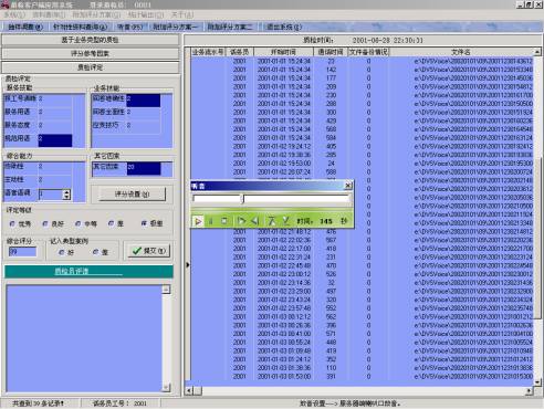 下圖為AP Suite質(zhì)檢平臺(tái)的調(diào)聽界面,在該界面的左側(cè)為該話務(wù)員的得分情況,右側(cè)為通話記錄。從此圖可以找出某一話務(wù)員的薄弱環(huán)節(jié),在以后的培訓(xùn)和學(xué)習(xí)中就有了針對(duì)性。