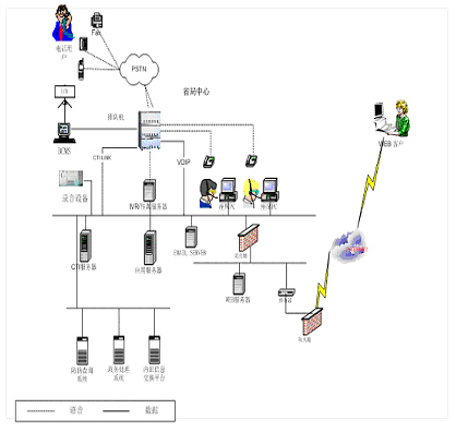 2 ) CTI(計算機電話集成)服務器:通過該平臺實現(xiàn)計算機網(wǎng)絡與電話系統(tǒng)的無縫結合,可通過計算機應用系統(tǒng)對話務處理進行操作;