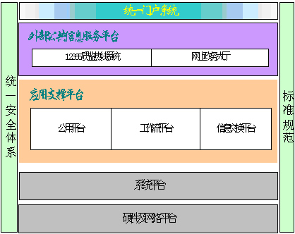 2 )系統(tǒng)基于 J2EE架構,采取三層結構設計,分為前端應用(外部公共信息服務平臺)、應用支撐平臺和系統(tǒng)軟硬件平臺,以應用支撐平臺為核心,以安全和標準為保證。