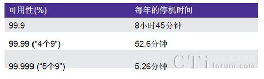 下表顯示了24x7x365全天候系統(tǒng)的可用性。聯(lián)絡(luò)中心的可用性以“正常運行時間”或者解決方案用于適當(dāng)處理客戶互動的時段來表示。