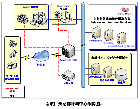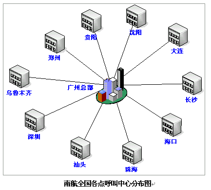 始自2002年eSOON & Genesys 成為南方航空的CTI軟件提供商,為其打造全國客服中心網絡。 廣州是南方航空公司的總部所在,自然就成為全國網絡的中心;除廣州以外,南方航空還擁有全國10個地區(qū)的航線基地,絕大部分基地均為省會城市或主要商業(yè)中心。到目前為止,作為網絡據點的貴陽、長沙、烏魯木齊、沈陽、深圳、珠海、汕頭以及海口等分點已成功投入使用,另湖北、河北等省份的中心城市也在規(guī)劃階段中。