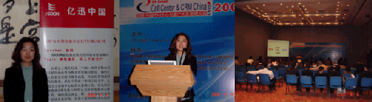 一年一度的中國呼叫中心與客戶關系管理大會于2006年4月3日在北京國際會議中心隆重開幕,并與4月5日圓滿閉幕。今年大會主題為:新時期的呼叫中心及CRM,成就與挑戰(zhàn)。此次活動吸引了與呼叫中心相關的各界人士的光臨,共計1000多人與會,活動連續(xù)三天。億迅(中國)軟件有限公司(eSOON)作為呼叫中心及CRM業(yè)優(yōu)秀的開發(fā)商和集成商,在本次大會上以特別贊助商的身份閃亮登場,給大家留下了深刻的印象,并為大家?guī)砗艚兄行募癈RM領域最新的趨勢分析及最佳的解決方案。