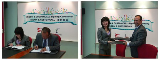2007年5月16日,億迅中國(guó)軟件有限公司北京分公司的會(huì)議室里花團(tuán)錦簇,eSOON與Customcall公司的簽約儀式在和諧融洽的氣氛中進(jìn)行。雙方先對(duì)未來的合作發(fā)展進(jìn)行了討論,10點(diǎn)58分,億迅公司CEO李冰影女士與澳洲Customcall CEO Mike Adams先生在購(gòu)買EZactor的合約上簽上了字,這標(biāo)志著億迅自主研發(fā)的呼叫中心CRM產(chǎn)品-EZactor成功進(jìn)入國(guó)際市場(chǎng),也是中國(guó)的民族品牌軟件進(jìn)入國(guó)際市場(chǎng)。