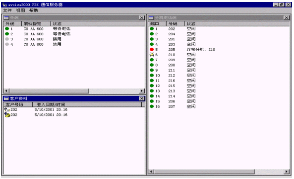 1) 交換機通信服務(wù)器:顯示您的外線/分機/客戶端的接線情況